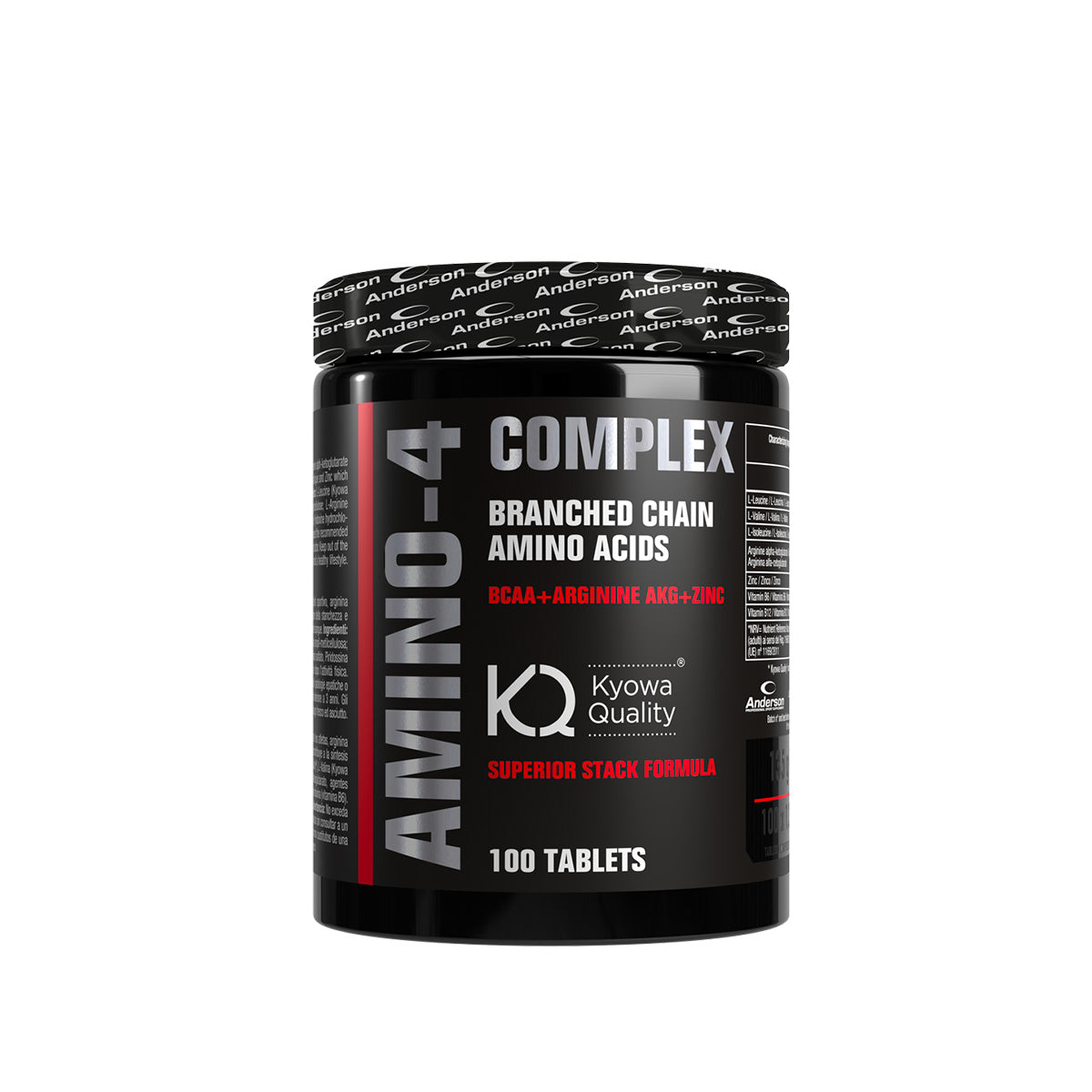 Anderson AMINO-4 Complex è un integratore a base di aminoacidi ramificati (BCAA) con Arginina alfa-chetoglutarato (AKG), Zinco monometionina e Vitamina B6, opportunamente formulato per gli sportivi per agevolare il recupero dalla fatica e fornire energia negli sport di resistenza e potenza.