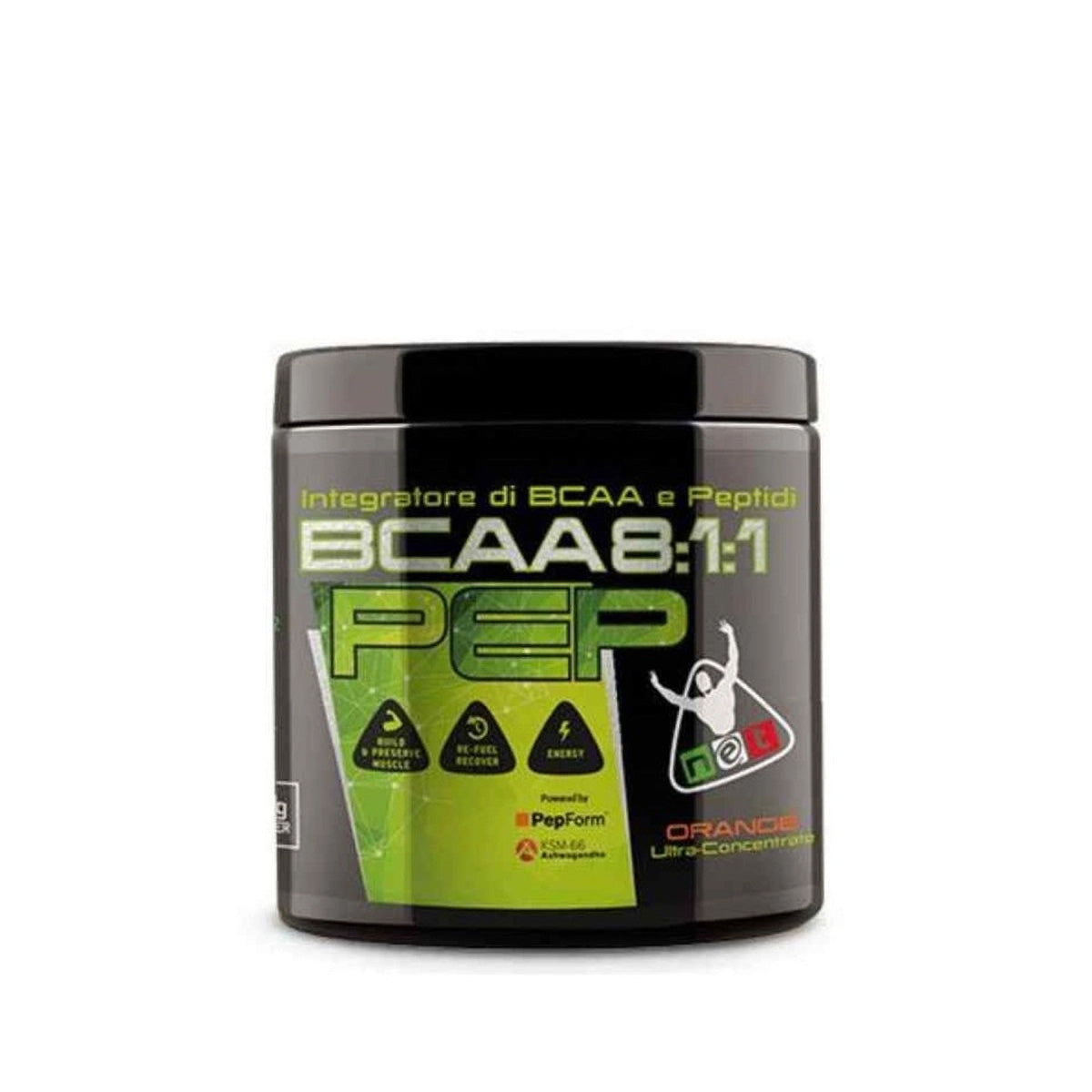 NET BCAA PEP 8:1:1 è un integratore alimentare di amminoacidi a catena ramificata, in polvere.