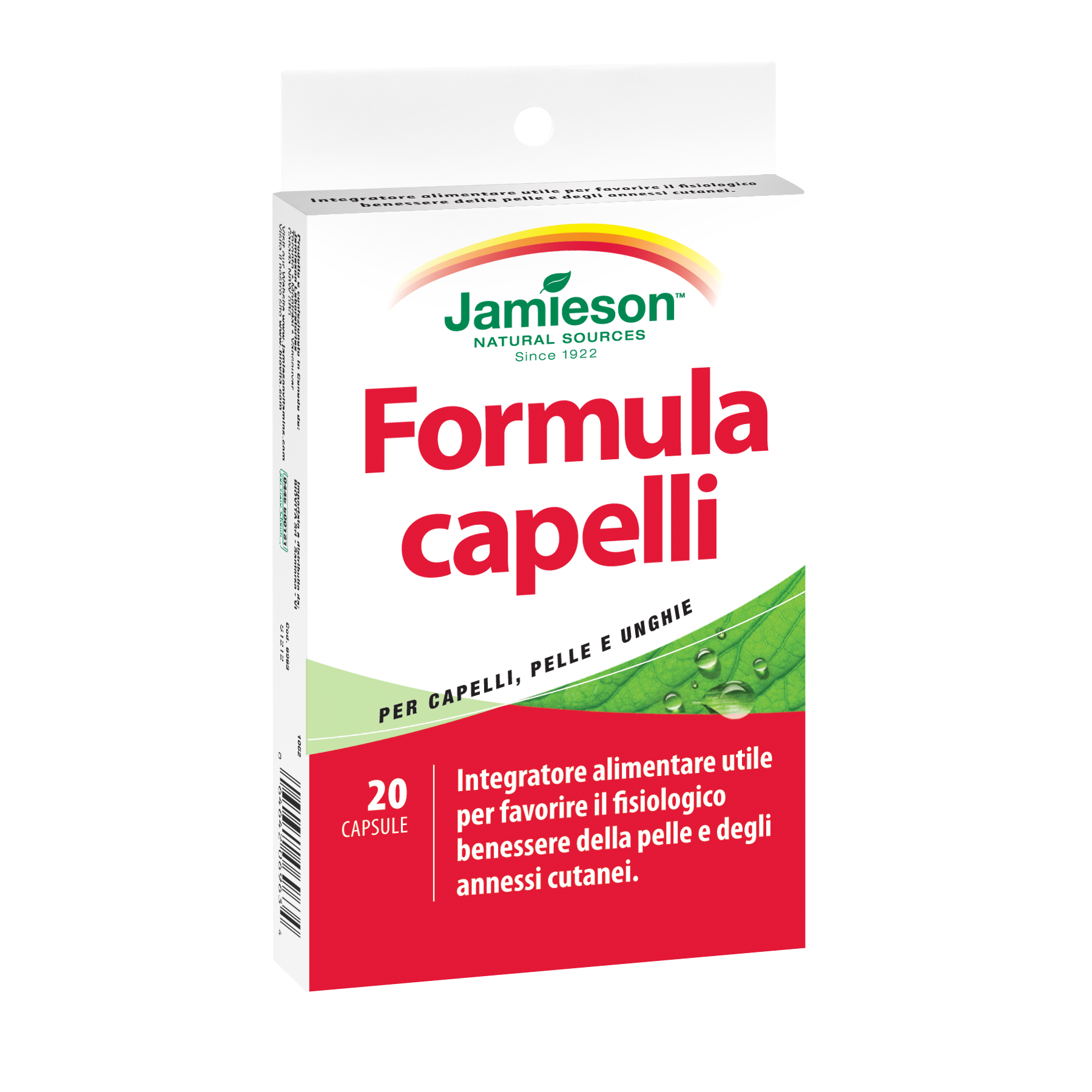 JAMIESON Formula Capelli è un integratore a base di olio di germe di grano, vitamina B5, L-cistina, lecitina di soia e semi di miglio (Panicum miliaceum) e contribuisce al benessere di unghie e capelli. Si può assumere in caso di capelli e unghie fragili e nei cambi di stagione.