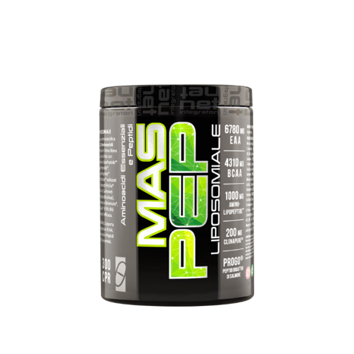 NET Mas Pep Liposomiale è un integratore di Aminoacidi in Compresse composto da una matrice a sequenza aminoacidica formulata con Aminoacidi Essenziali Eaa, Bcaa e Peptidi di aminoacidi liposomiali, utile per massimizzare la Sintesi Proteica e migliorare la prestazione sportiva.