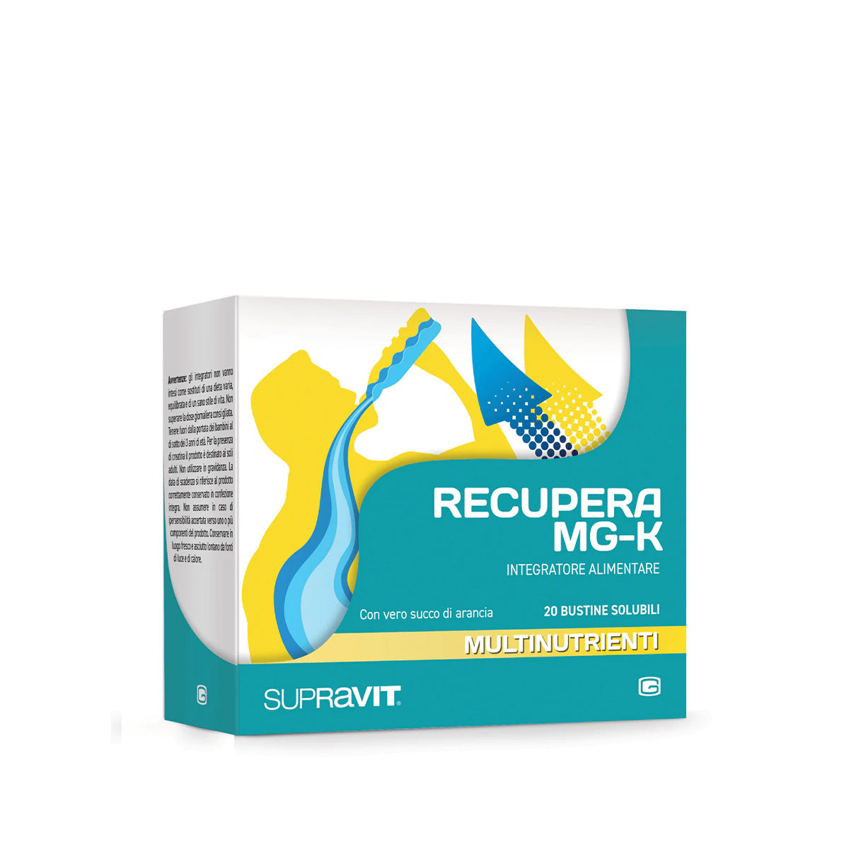 SUPRAVIT Recupera MG-K è un integratore alimentare energetico-salino a base di magnesio e potassio che favorisce il ripristino dell’equilibrio idrosalino fisiologico nei casi di stati di stanchezza, debolezza muscolare, eccessiva sudorazione, intensa attività fisica, diarrea e vomito prolungati. Sottoforma di aspartato aiuta a contrastare la fatica cronica e a potenziare il lavoro muscolare favorendo un miglior sfruttamento delle riserve energetiche del muscolo.